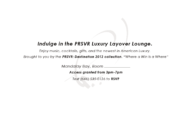 To all you buyers and tastes makers that will be in Las Vegas for MAGIC Summer 2012, make sure you check out this exclusive event taking place at Mandalay Bay… Luxury Travel Luggage and Clothing at it’s best.  Support PRSVR and join us for an afternoon of fashion!   Look for @PRSVR at MAGIC, room number will be released per RSVP to info@prsvr.com and on alwaysbknown.com the day of the event!!!  Hope to see you there!